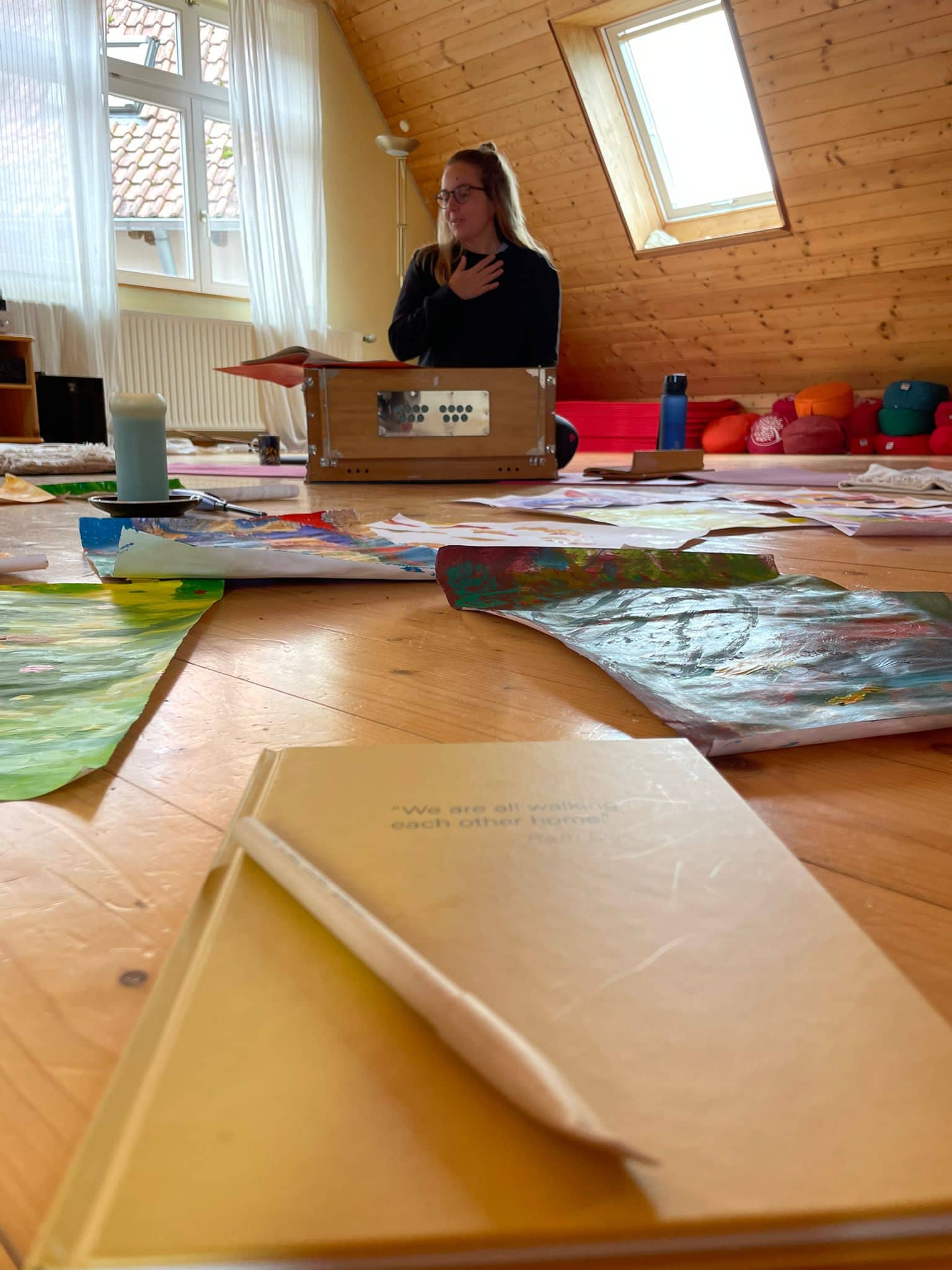 - alle Angebote mit allen Materialien: Yoga, Meditation, Atemarbeit, Cacao, Malfarben, Blätter etc.